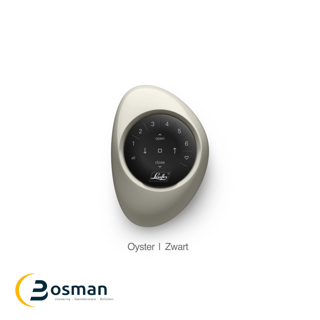 De gebruiksvriendelijke afstandsbediening voor in de hand, waarmee met één druk op de knop eenvoudig één of meerdere Luxaflex® producten bediend kunnen worden.